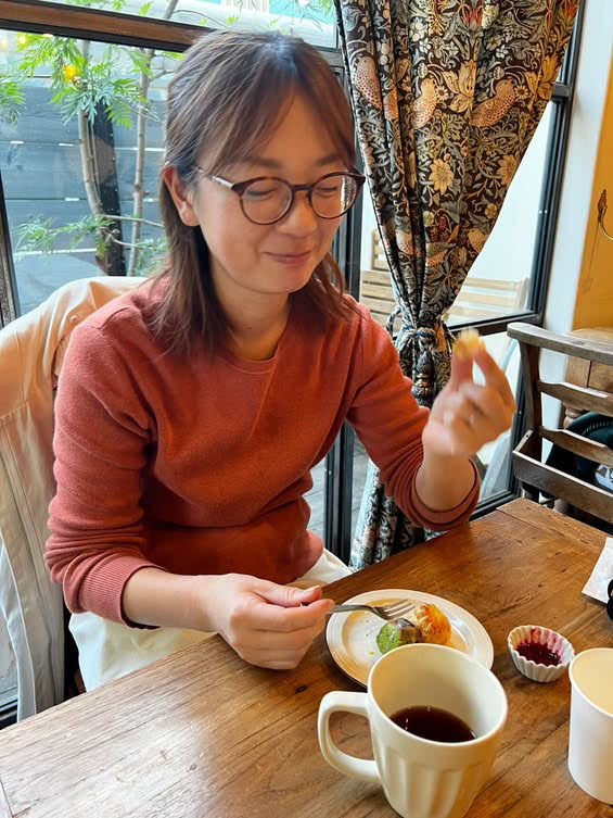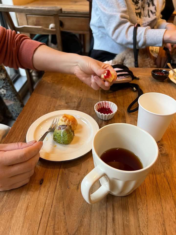 そんなカフェタイムは、思いがけずにぎやかで楽しいものでした。1人だったら、そんなに食べなかったかもしれないけれど、みんなでスコーンも食べたいし、かぼちゃのバスクチーズケーキも食べたいから全部のせしてもらおうよ~なんて言って美味しいスイーツももりもり食べて。